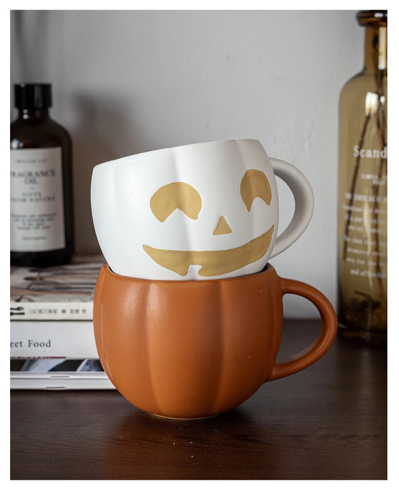 Creative Pumpkin Cup Retro Ceramic Coffee Cups Halloween Ghost Devil Decoration Mug Fall Cute Water Cup Milk Breakfast Drinking